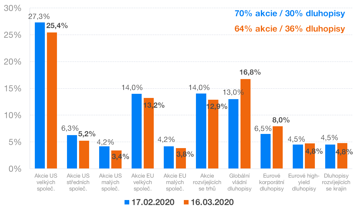 Zároveň provedl to, k čemu se většina investorů vlivem emocí neodhodlá. Po propadu trhů prodal konzervativní nástroje a přikoupil levná riziková aktiva.