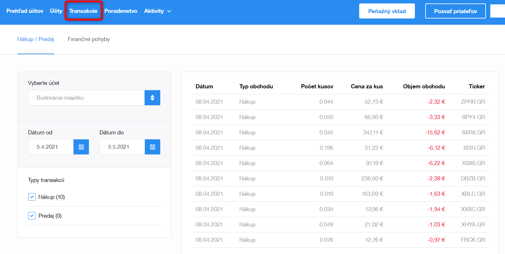 Upozorňujeme, že u každého klienta rebalancing vypadá rozdílně. Uvedený příklad je jeden konkrétní účet na ilustraci rebalancingu. Jednotlivé účty, na kterých proběhl v březnu rebalancing, měli v době jeho realizace rozdílné složení portfolií, podíl fondů byl rozličný, proto i samotné obchody mohou být jiné, co se týče jejich velikosti, ale i samotných cenných papírů.