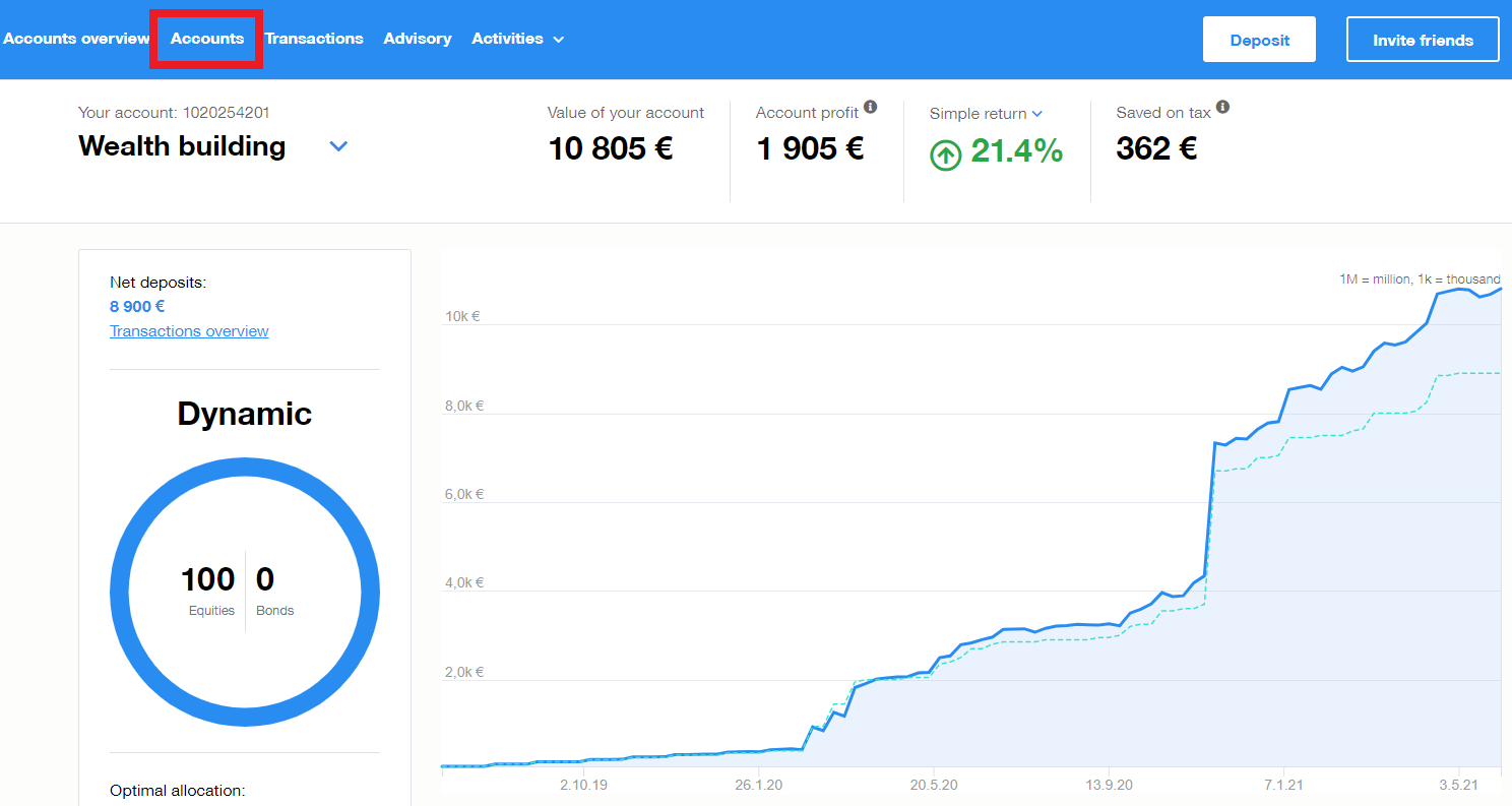 If all these conditions are met, the first deposit in the account will be invested on the next investment day in accordance with the selected investment strategy. The investment day takes place once a week, usually every Tuesday, with the exception of public holidays, etc.