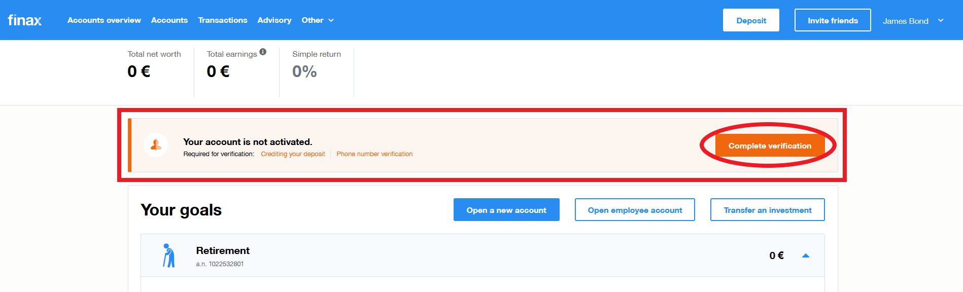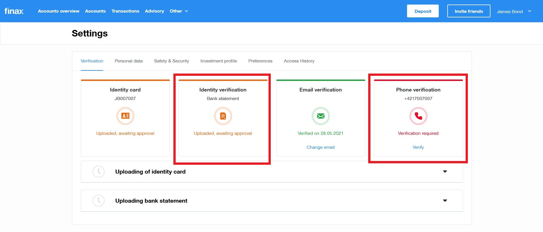Moreover, after logging into your account, you can clearly see the missing documents. You will see a highlighted bar below the main menu informing you that your account has not been activated.
