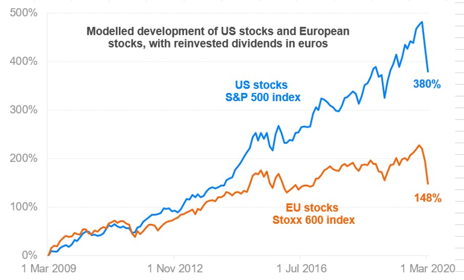If a European investor wants to maximize the return on his investment, his investment simply has to leave the borders of his country. There is no need to go far to verify the correctness of this statement. Just look at the past 11 years, which have been clearly dominated by US stocks.
