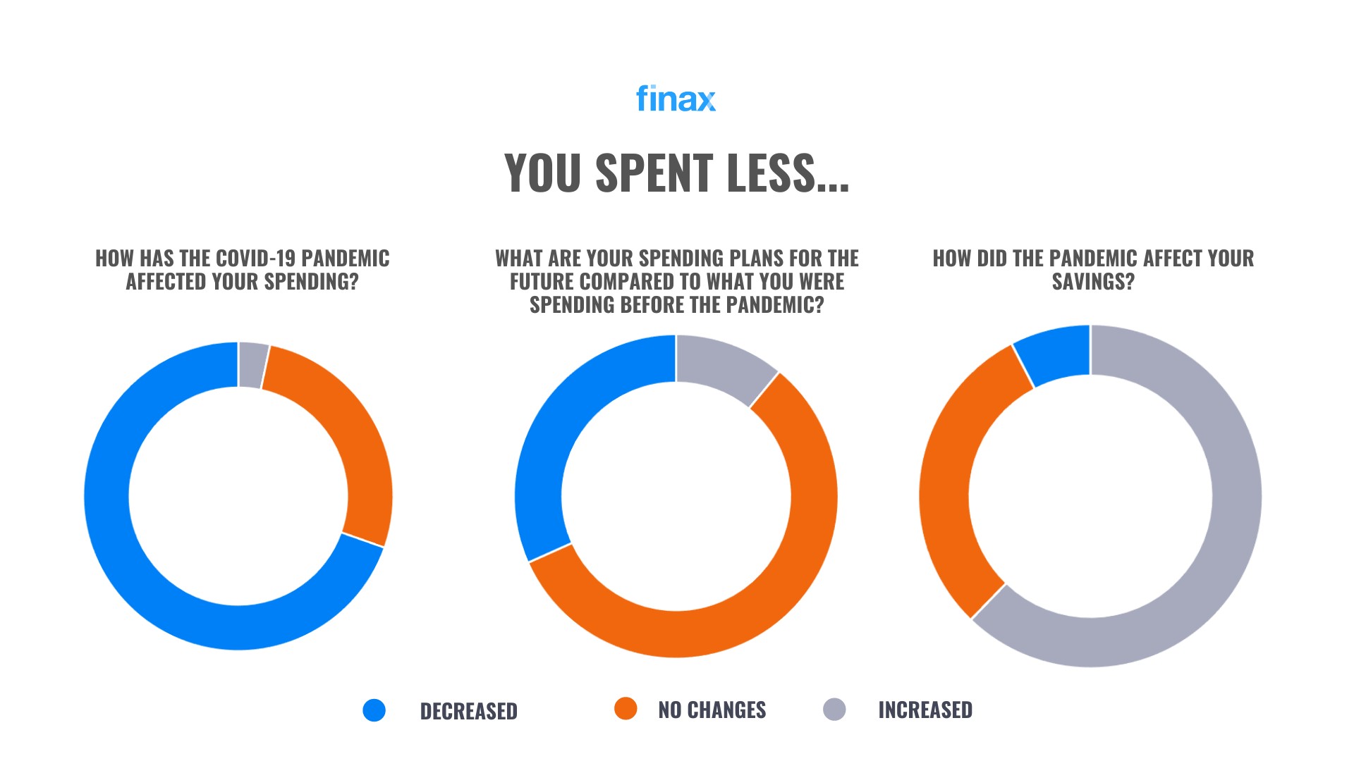 The study on the financial impact of the pandemic was conducted in May 2021 in the form of an online survey. . In the study participated 1500 people from Central European countries. 89% of them are you, dear Finax clients. Thank you for being honest! We will soon present new conclusions from the survey - this time about personal finance management applications that help you, among others, in saving and spending.