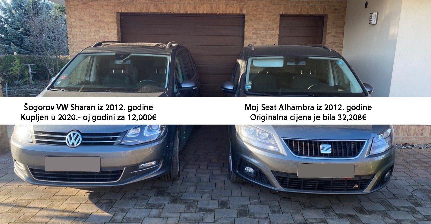 Nakon prvog kilometra, cijena automobila će past za oko 10%. Ako Vaš automobil košta 32 000 eura kao moja Alhambra, prvi kilometar koštat će Vas 3 200 eura, što je tri eura po metru. Zašto je to tako?