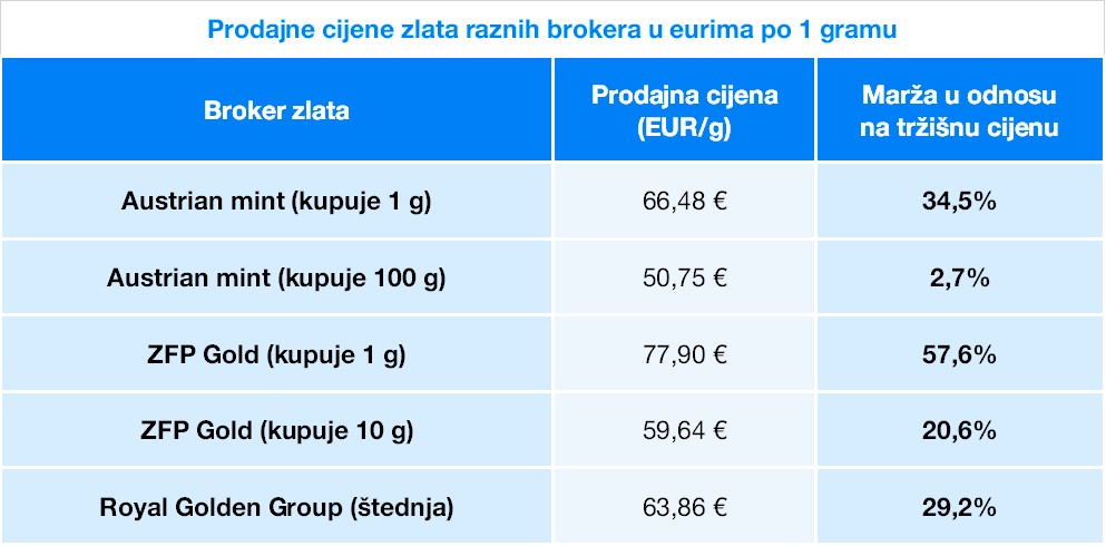 Uz prosječnu povijesnu aprecijaciju zlata, visoka marža znači da investitor u petoj godini držanja plemenitog metala postiže nabavnu cijenu, tj. “na nuli je“. Tek tada ulaganje zapravo počinje zarađivati i aprecirati u vrijednosti.