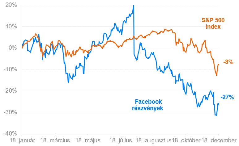 A Facebookba való befektetés egy év alatt negatív irányt vett, főként váratlan események következtében és értéke majdnem harmadát elveszítette, míg ha az amerikai cégek indexeit nézzük, akkor csak a 8%-os mínuszról beszélhetünk.