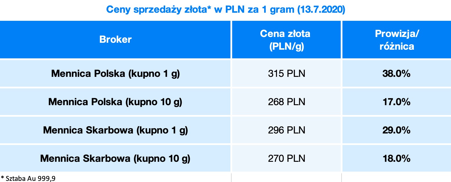 Inwestowanie w złoto w małych ilościach nagle nie wydaje się tak atrakcyjne. Zapłacenie ok. 30% opłaty zniechęca. Niemniej jednak wiele osób rezygnuje z jednej piątej inwestycji na rzecz sprzedawcy. W przypadku inwestycji o wartości 600 PLN mówimy o koszcie 180 PLN.