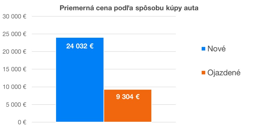 Kým priemerná cena ojazdeného auta bola 9 304 euro, priemerná cena nového auta bola 24 032 eur, čo je 2,5-násobok ceny ojazdeného auta, resp. takmer 15 000 eur za vôňu, status a komfort nového auta.