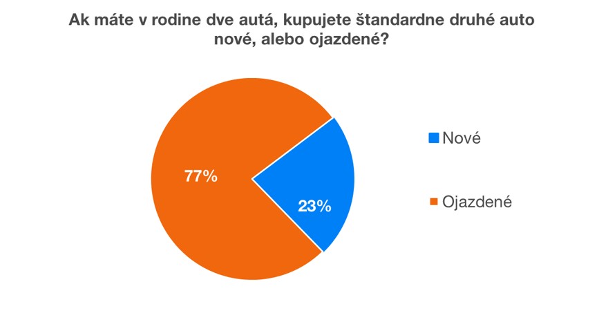 Ako vidieť z uvedeného grafu, až 77% ľudí, ktorí majú druhé auto v rodine, kúpilo toto auto už ojazdené, čo je viac ako 66% pri kúpe posledného auta. Druhé autá si do rodiny kupujú ľudia skôr ojazdené, čo je z pohľadu rodinného rozpočtu veľmi dobre.