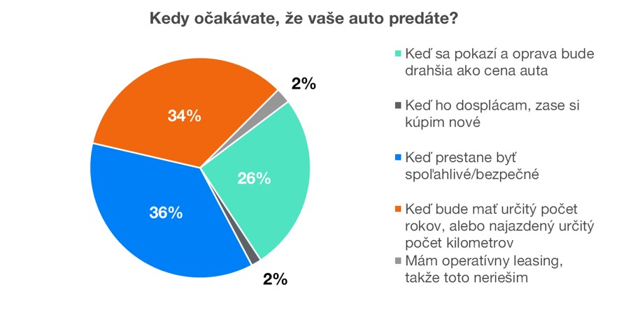 Ďalšie otázky som tvoril s ohľadom na naše najbližšie blogy k téme auta. Najbližšie ma bude zaujímať hľadanie momentu, kedy sa mi najviac oplatí auto kúpiť a kedy sa najviac oplatí predať, tzv. sweet spot. Preto ma zaujímalo, ako dnes vidíte čas, kedy sa auta zbavíte.