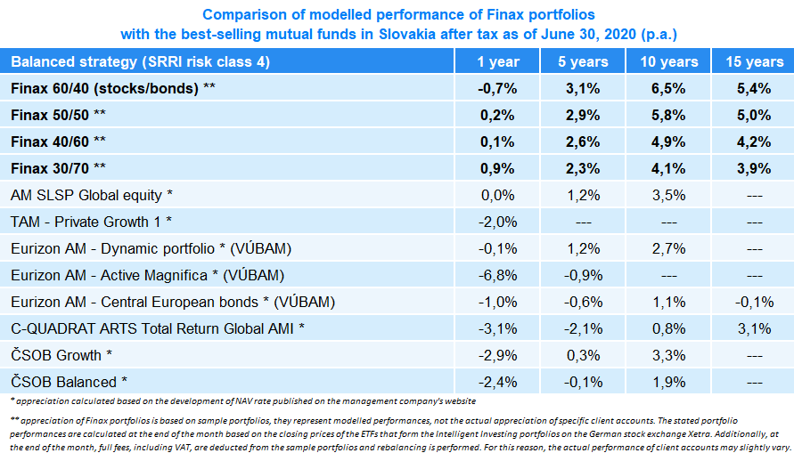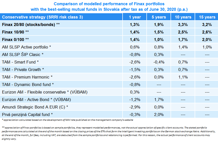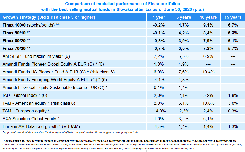 As of June 30, 2020, all comparisons of popular investment solutions with Finax have been updated: