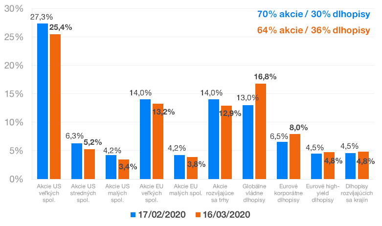 Finančné prostriedky boli investované 17. februára, niekoľko dní pred dosiahnutím vrcholu na svetových burzách cenných papierov. Pozrite sa, ako sa zloženie portfólia nášho klienta zmenilo za menej ako mesiac: