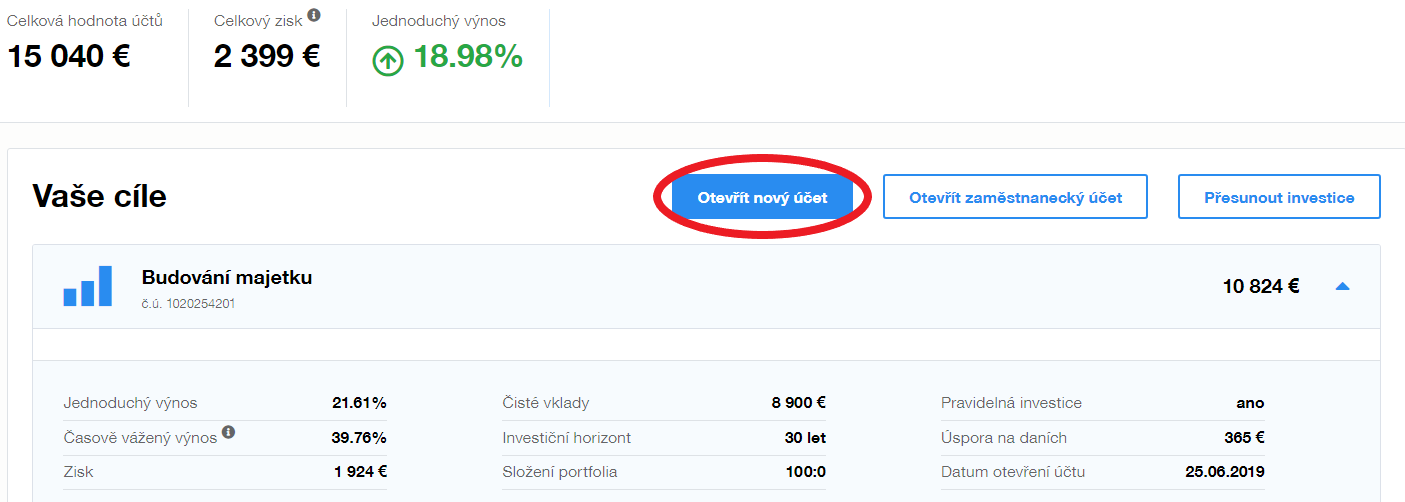 Pro vytvoření dalšího účtu jen zodpovíte otázky v investičním dotazníku, potvrdíte investiční plán a vaší vůlí ho otevřít prostřednictvím 4místného SMS kódu.
