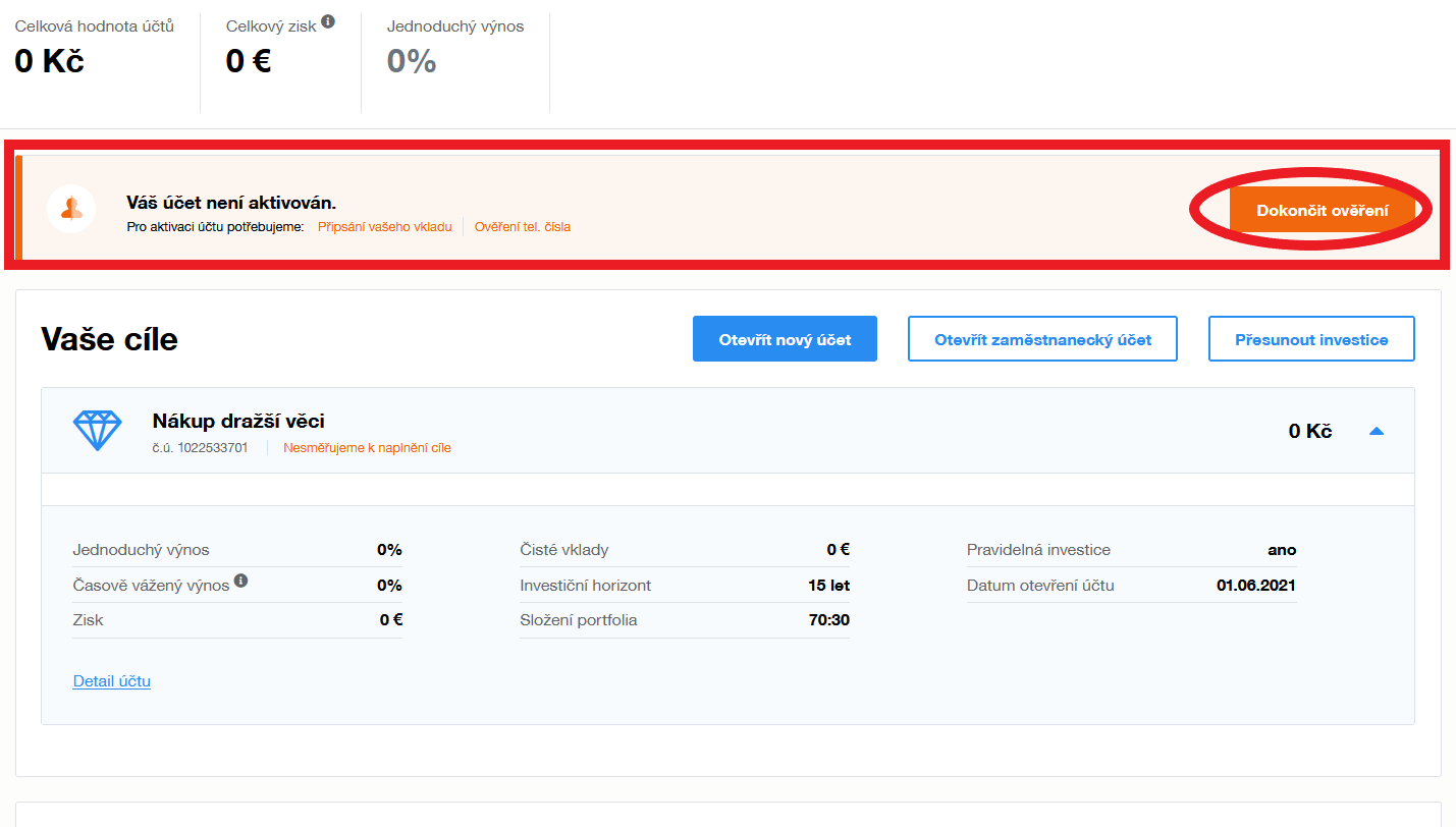 Pokud jste splnili všechny podmínky aktivace zmíněné v předchozí otázce, váš účet byl automaticky aktivován a prostředky budou zainvestované. O aktivaci jste byli informováni emailem.