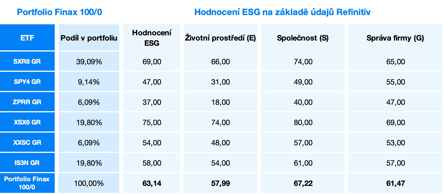 Přezkoumání poměru ESG pro portfolio Finax 100:0