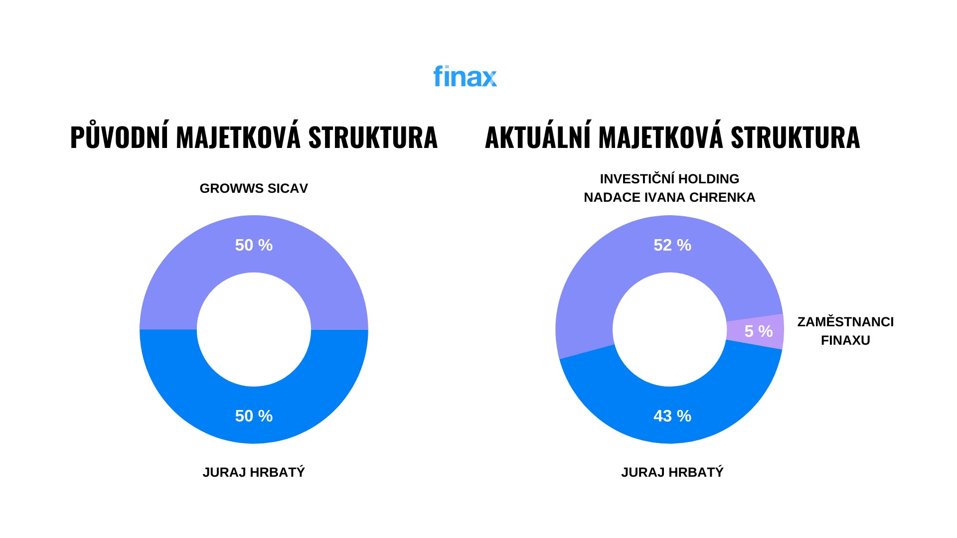 Investicí 1,5 mil. eur v roce 2019 získal fond Growws Sicav (v němž měl majoritní podíl investiční holding nadace Ivana Chrenka) ve Finaxu 50% podíl. Hodnota Finaxu se dva roky dozadu stanovila na 3 mil. eur a mně jako zakladateli Finaxu zůstal zbývající podíl 50 %.