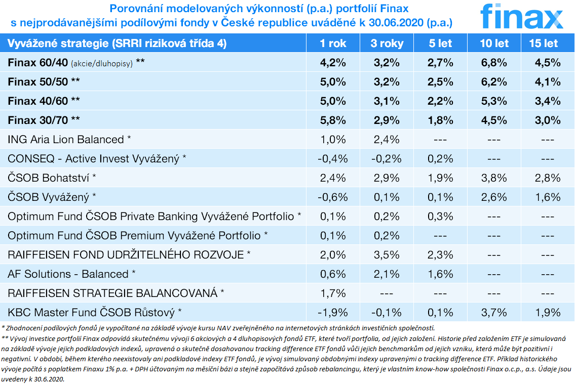 Bohužel data k horizontu deseti let nejsou u více fondů dostupné, a to z důvodu nedostatečné historie zmíněných fondů. Zbývající podílové fondy, kde je tato historie dostupná, jsou hladce porážena Finax portfolii.