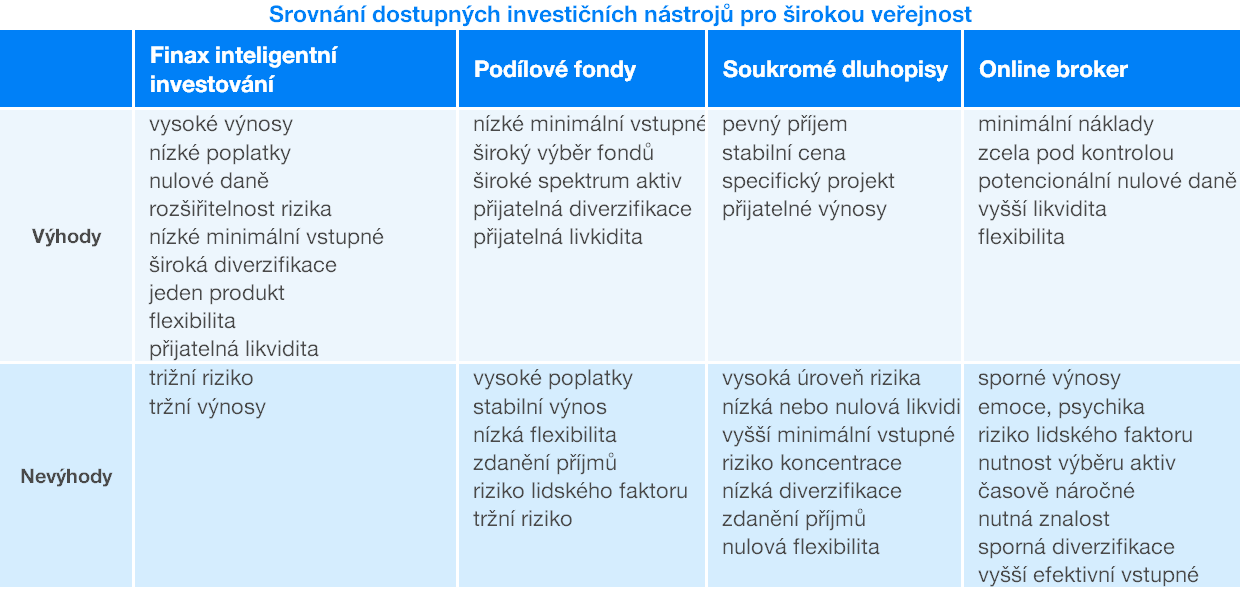 Tyto formy zhodnocování prostředků mají četné nevýhody ve srovnání s pasivním investováním do indexových fondů ETF, které nabízí Finax.