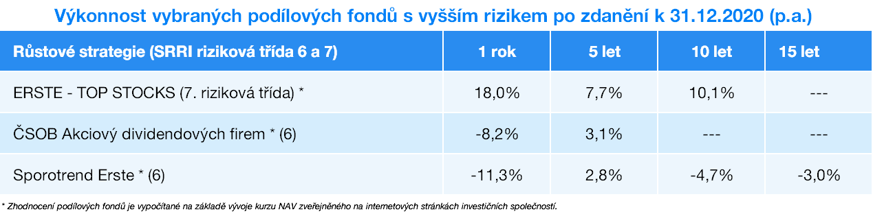 Musíme však zdůraznit, že vyšší zhodnocení je výsledkem i vyššího podstupovaného rizika – koncentrovanějších portfolií postavených na titulech s vyšší volatilitou.