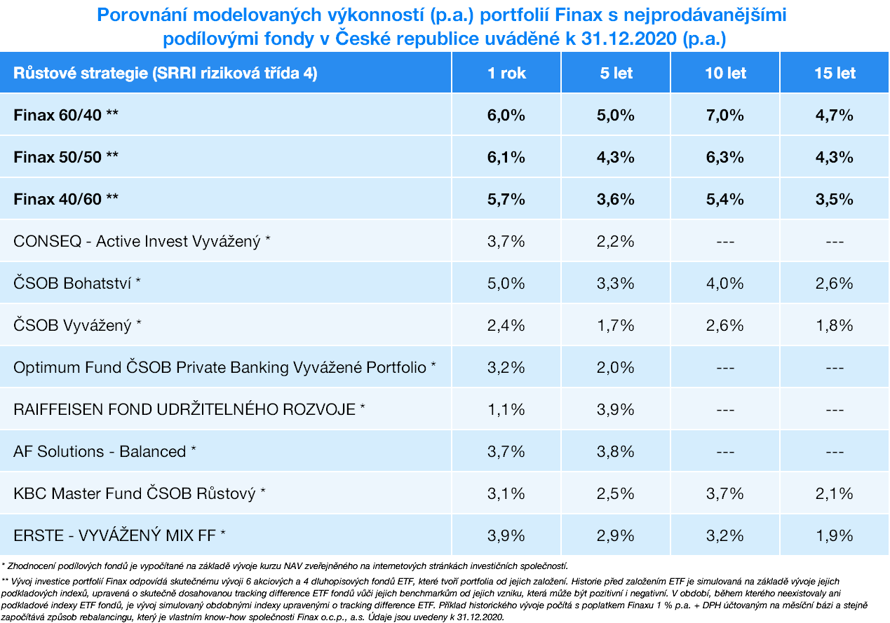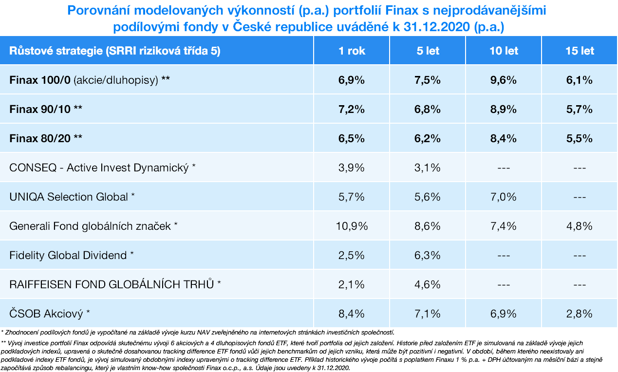 Čtenáři, kteří sledují Finax delší dobu, vědí, že porovnáváme výnosy modelovaných portfolií Inteligentního investování s identickými investicemi v podobě podílových fondů.