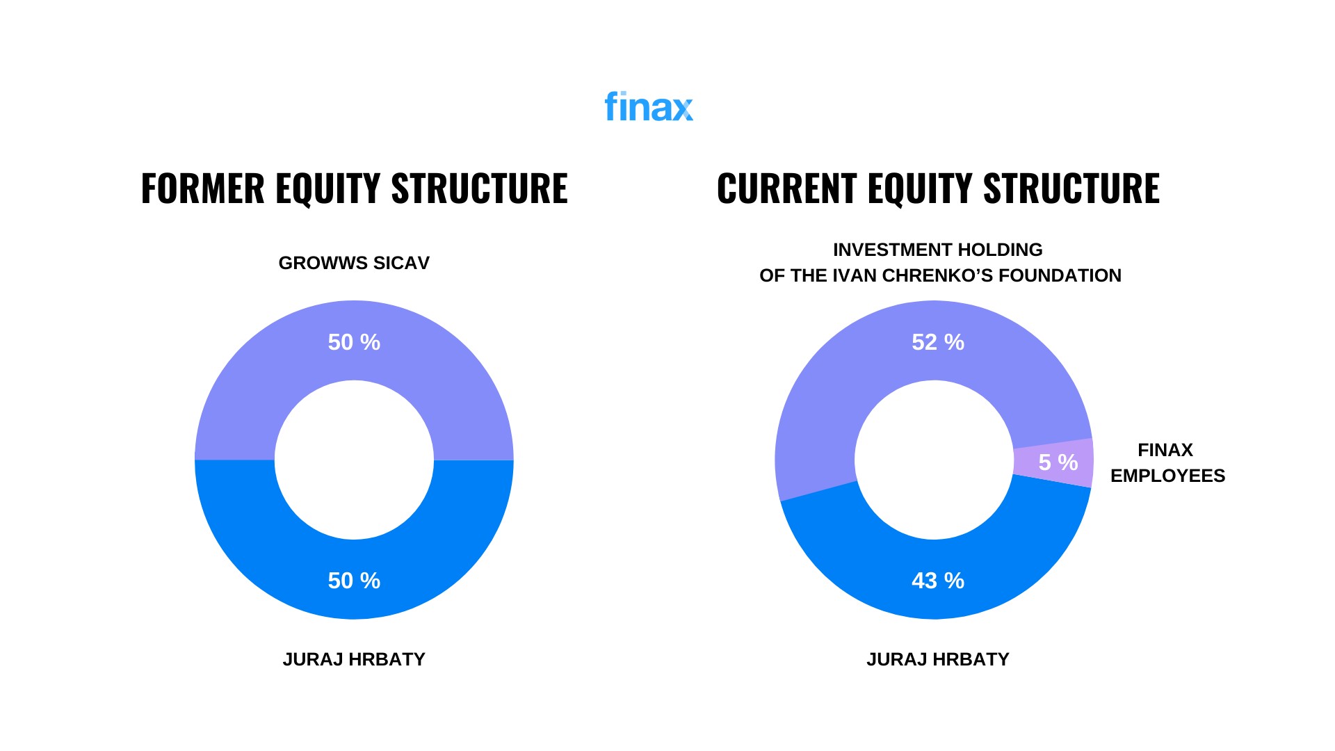 Over the past few weeks, a series of transactions have taken place through which the holding company of the Ivan Chrenko Foundation has purchased the stake of the Growws Sicav fund (the original shareholder of Finax), while at the same time, the foundation increased its investment in Finax by additional EUR 1,5 million, at the company value of EUR 23,25 million.