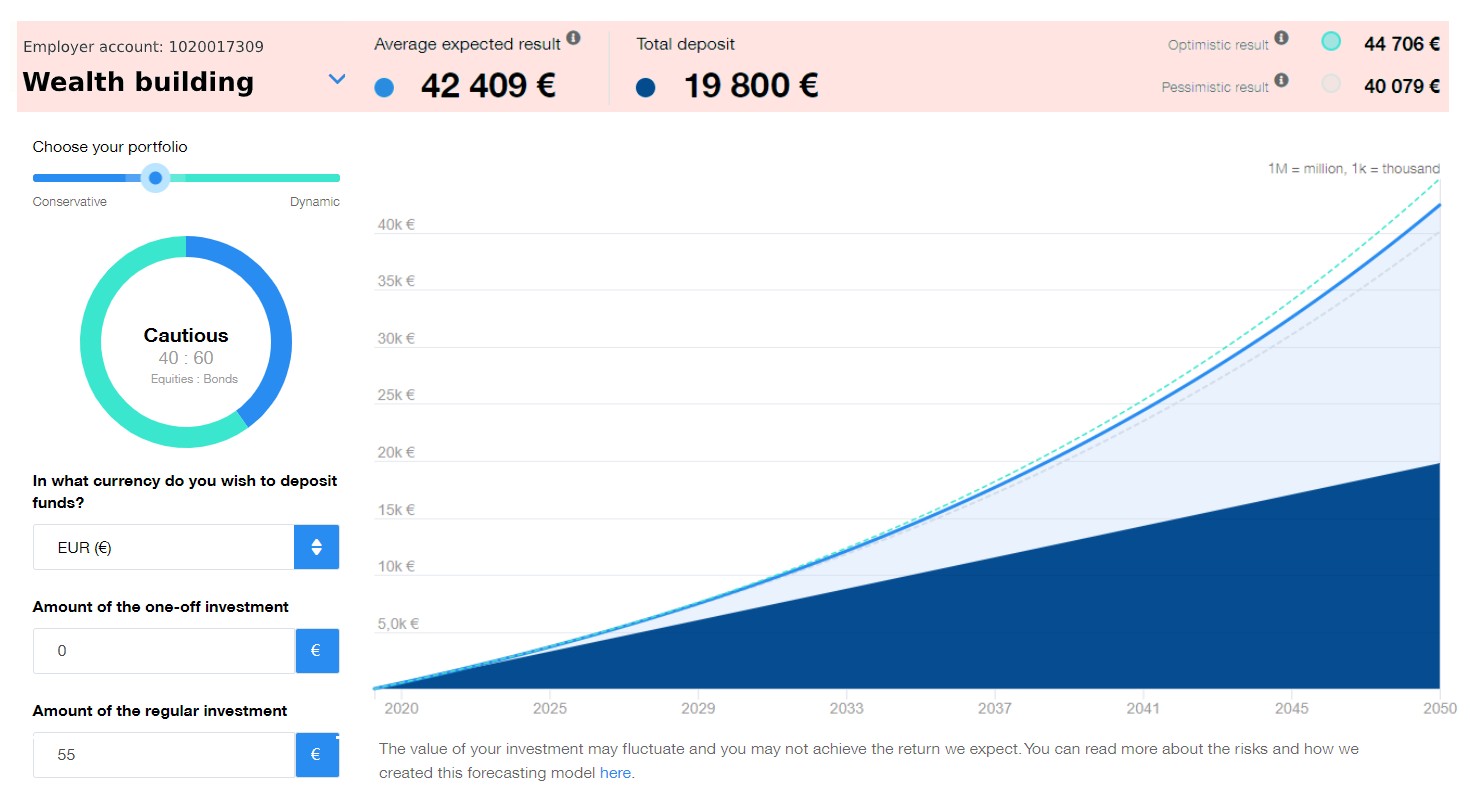 When you change the investment strategy of your paired account, we will automatically change also the investment strategy of your employee account. You can change your investment strategy (ratio of equities and bonds) once a calendar year, at any moment, for free.