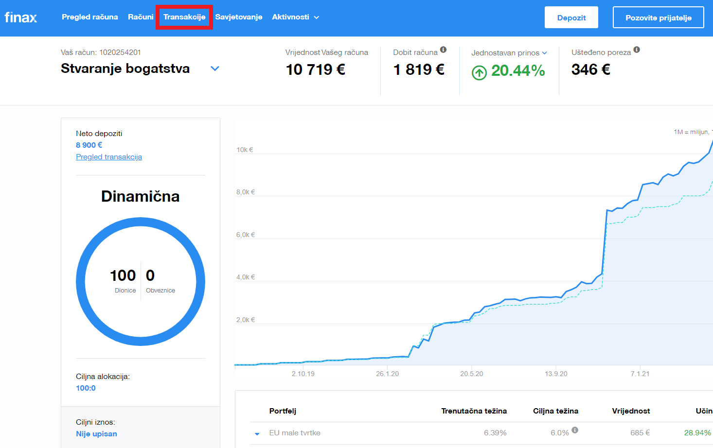 Finax upravlja Vašom imovinom. Vi ste konačni vlasnik vrijednosnih papira i novca sa svim pravima koja iz toga proizlaze, uključujući njihovo raspolaganje. To znači da ga možete uplatiti i povući u bilo kojem trenutku i u bilo kojem iznosu (najmanje 10 €)