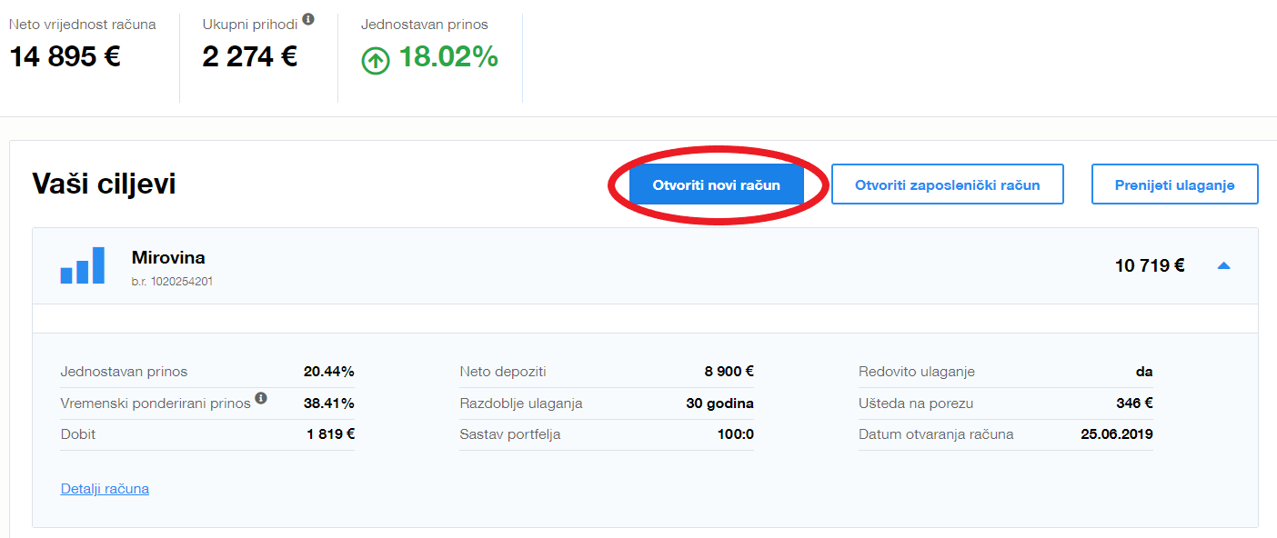 Dodatni račun za ulaganje možete otvoriti još jednostavnije, putem Vašeg online pregleda računa. Nakon prijave vidjet ćete plavi gumb Otvoriti novi račun.