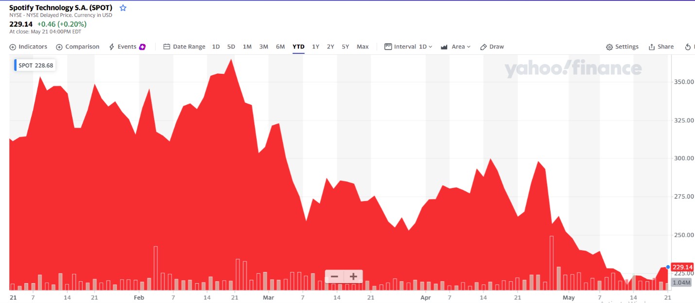 Ovakvih primjera na burzi zaista ima mnogo. Možemo ih uzeti još par poput Spotify kompanije. Najpopularnija svjetska aplikacija za služanje glazbe i podcasta kojoj poslovanje snažno raste doista je odlična kompanija.