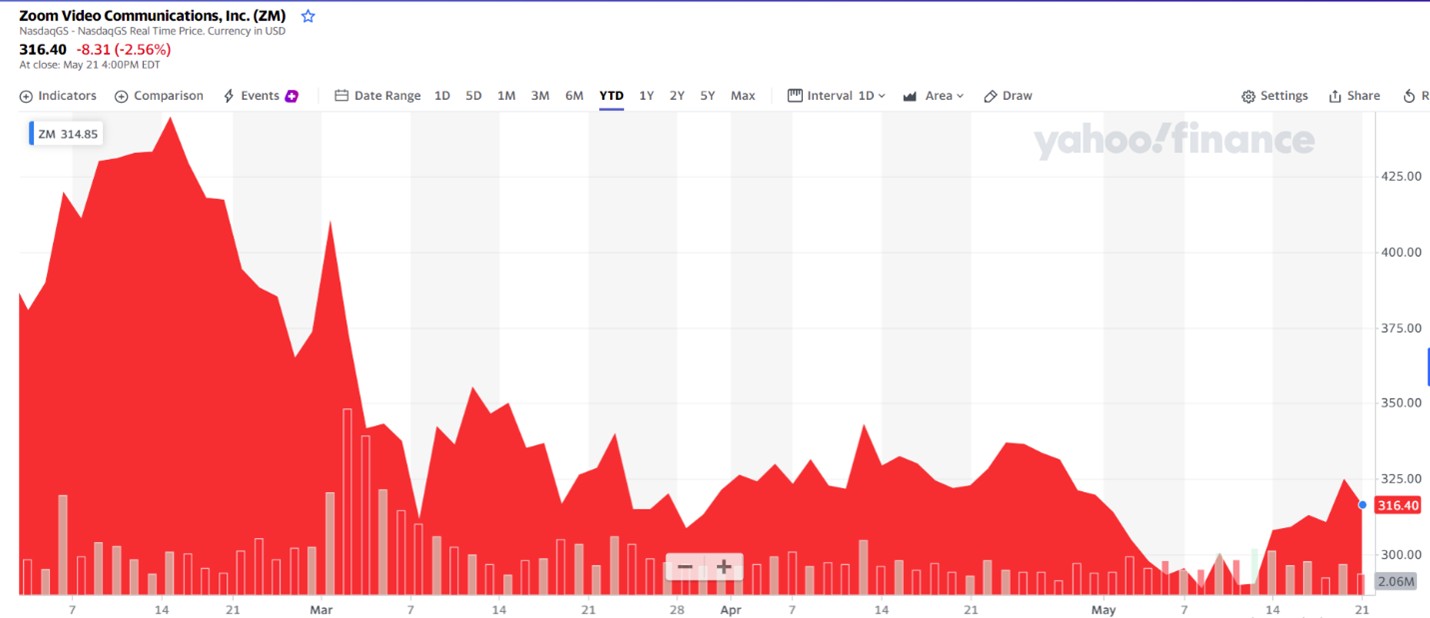 Još jedan ekstreman primjer vidimo na cijeni dionice kompanije Zoom čiju tehnologiju većina nas koristi za online sastanke te koja također ima eksplozivan rast poslovnih rezultata:
