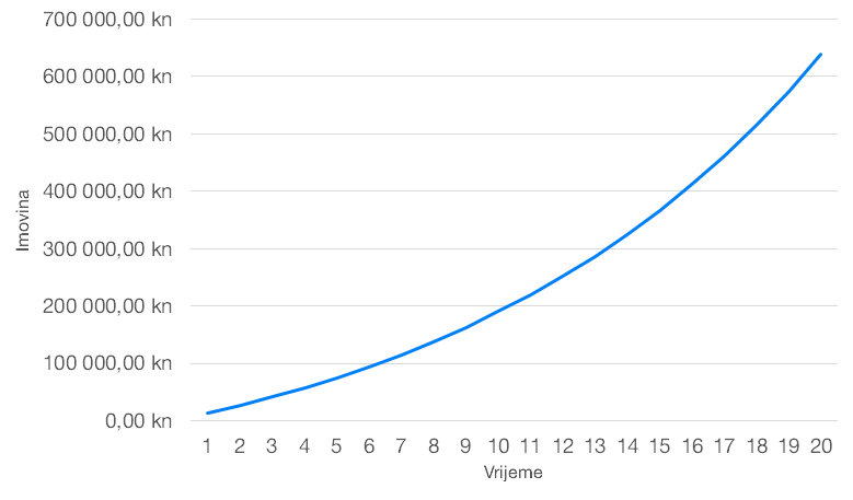 Sve to donosi u prosjeku prinos od 9% i uz ulog od samo 1,000kn mjesečno bismo nakon 20 godina došli do preko 600,000kn!