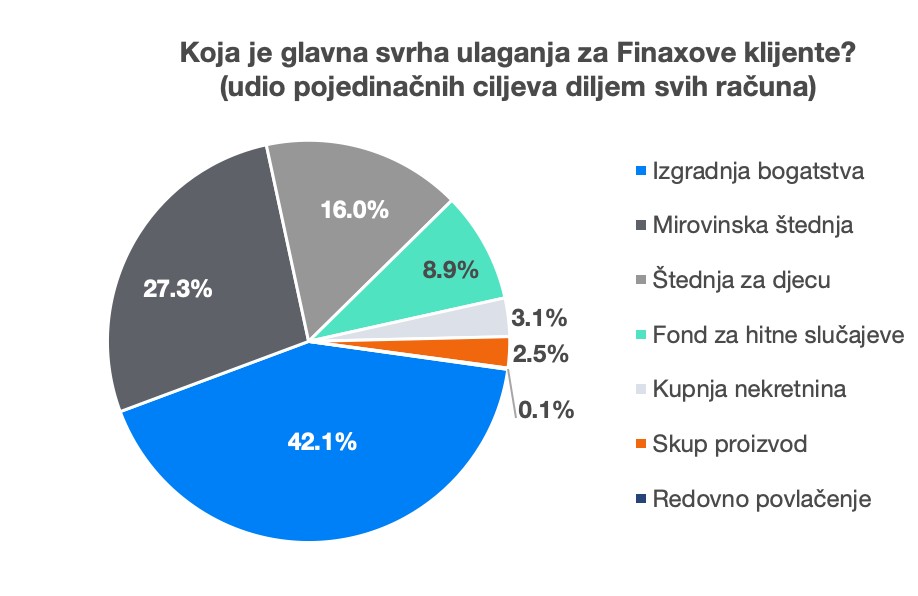 - Najčešći razlog zašto klijenti ulažu s nama je izgradnja bogatstva, koju slijedi mirovinska štednja i štednja za djecu.