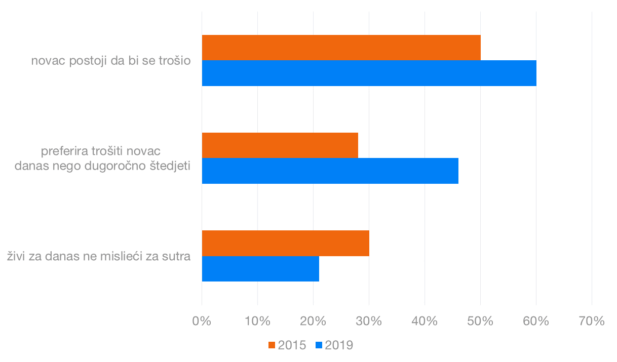 Kako su trgovina i zabava zamrle u vrijeme pandemije, niža potrošnja nije ništa čudno. Gotovo 70% ispitanika primijetilo je smanjenje potrošnje, a samo je 3% ispitanika uočilo povećanje. U ovoj je situaciji povećanje štednje prirodna posljedica – a to je bio slučaj za 62% ispitanika. Navike iz doba COVID – a mogle bi uzeti maha. 32% ispitanika planira smanjiti potrošnju u odnosu na razdoblje prije pandemije, dok samo 11% njih želi odustati od smanjene potrošnje.