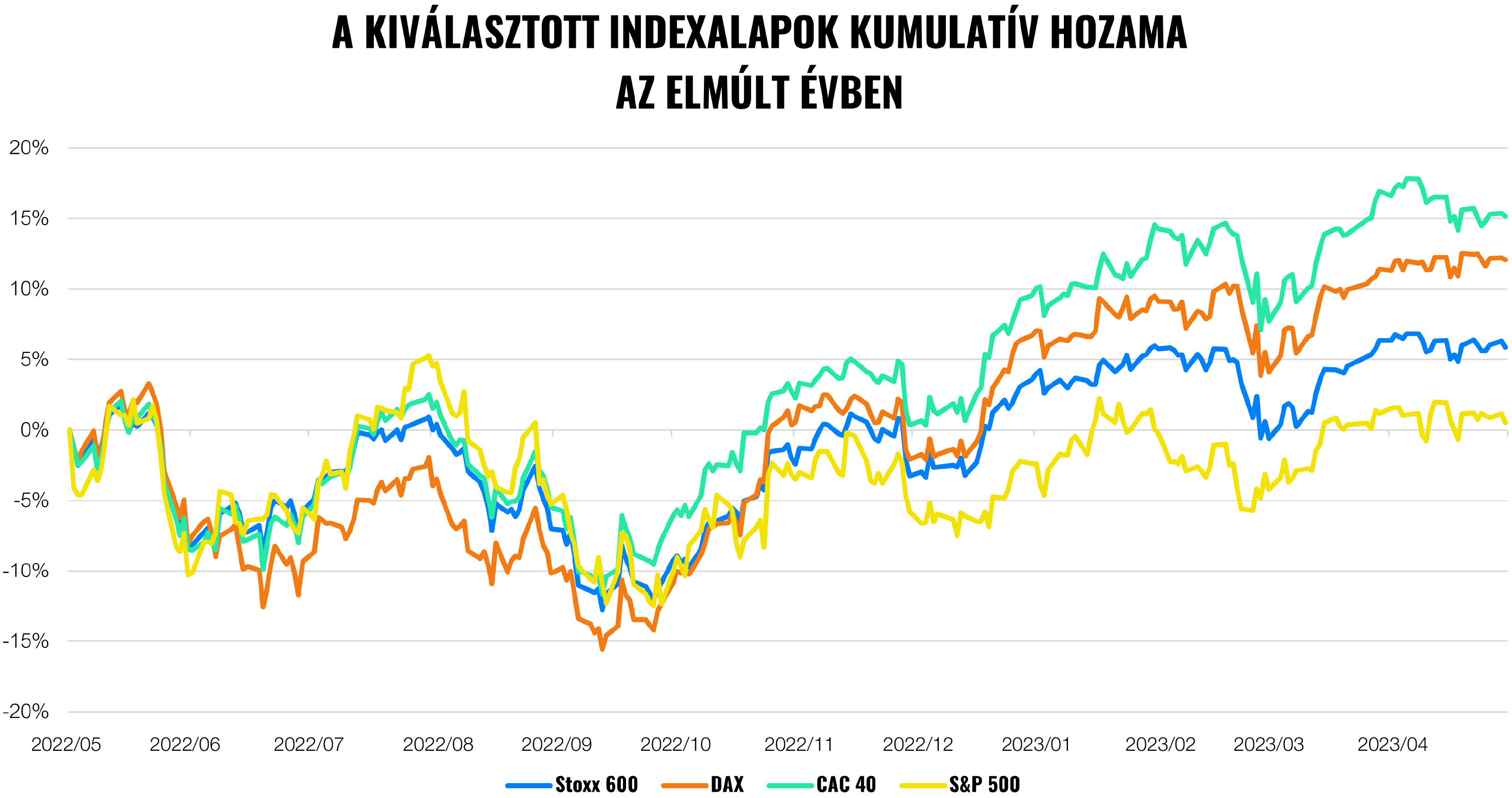 Ezzel szemben számos európai index sokkal erőteljesebb fellendülést produkált: a Stoxx 600 index az elmúlt egy év során közel 6%-os nyereséget ért el, a szűkebb indexek, mint a német DAX és a francia CAC 40 pedig még ennél is többet (12,1%, illetve 15,2%). Néhányan közülük az elmúlt hónapokban történelmi csúcsokat is döntöttek.