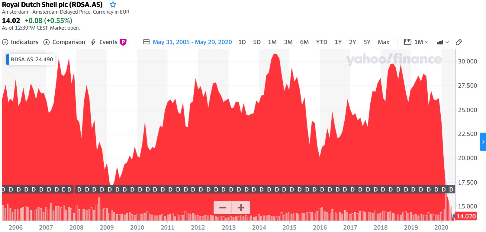 Mindkét cég részvényárai alacsonyabb színvonalon vannak, mint 15 évvel ezelőtt. A Shell osztalékhozama 3,7 %, de a társaság értéke a háromnegyedével alacsonyabb mint 15 évvel ezelőtt. Az Exxon jelenleg az osztalékok 7,4 %-át fizeti ki, a részvények azonban az áruk ötödét vesztették.
