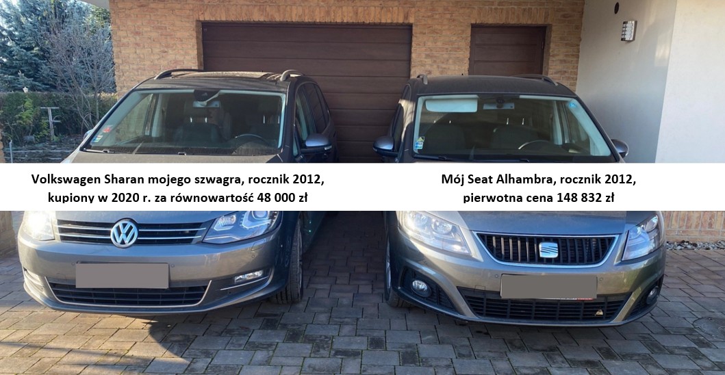 Z efektu amortyzacji w pełni zdałem sobie sprawę dopiero, gdy w zeszłym roku mój szwagier zakupił Volkswagena Sharan, prawie identycznego jak moja Alhambra. Jego samochód ma lepszy silnik, więcej dodatków, jest bezwypadkowy i kupiony od znajomego, a do tego Volkswagen jako firma cieszy się lepszą opinią niż Seat.