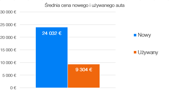 Podczas gdy średnia cena używanego samochodu wynosiła 9304 euro, dla nowego samochodu wynosiła ona 24 032 euro, czyli ponad 2,5 razy więcej. Oznacza to prawie 15 000 euro płacone za status, wygodę i zapach nowości samochodu.