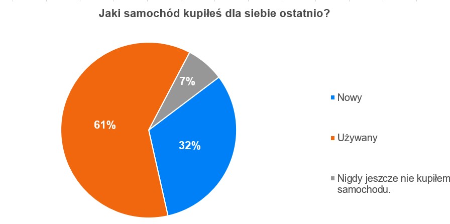 Pozytywnie zaskoczył mnie fakt, że ponad 60% respondentów (głównie klientów Finax) zdecydowało się na zakup używanego samochodu. Stanowili oni aż dwie trzecie wszystkich posiadaczy aut. Jak wcześniej wspomniałem, większość respondentów stanowią nasi klienci.