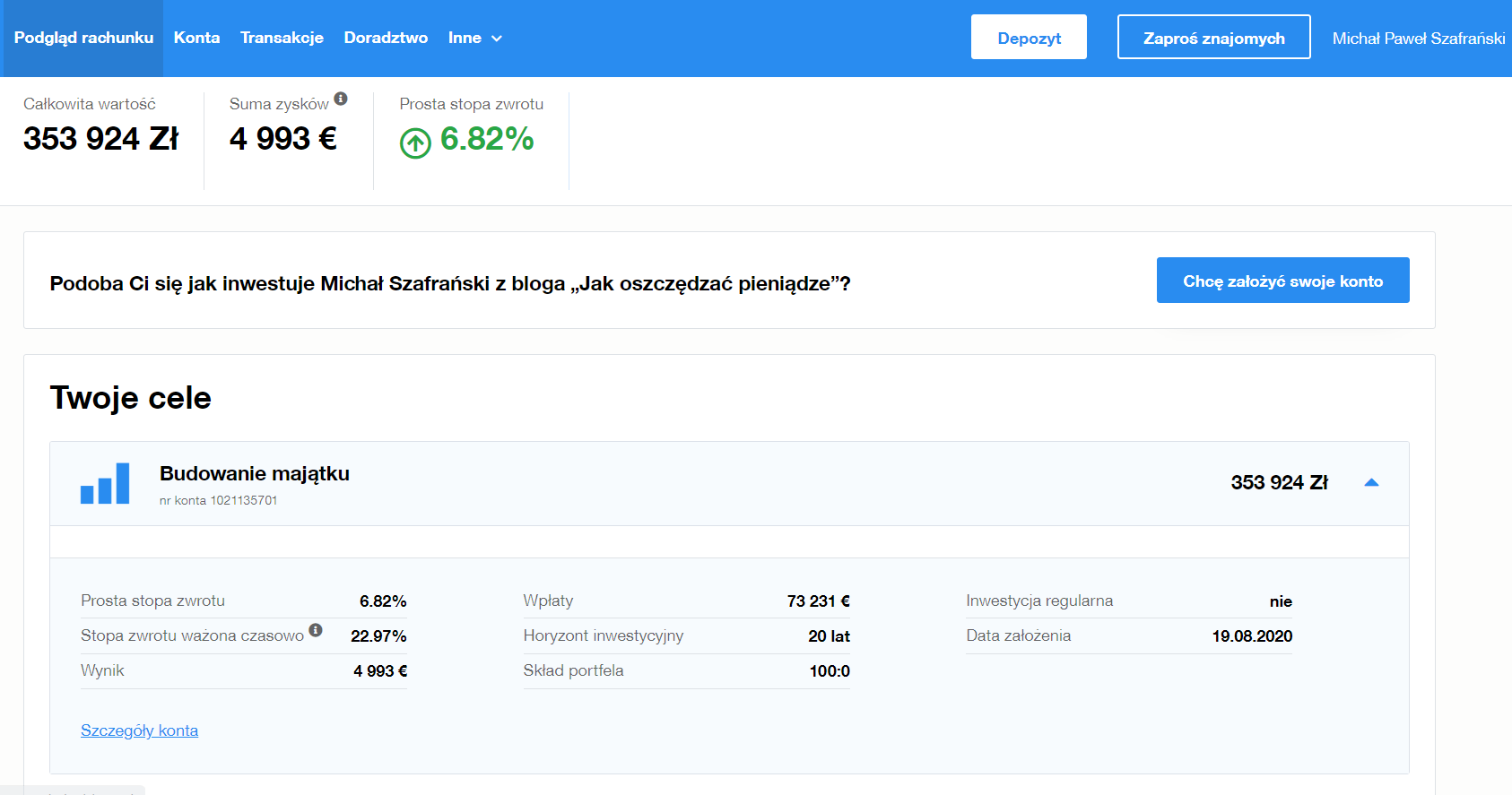 Zerknij na publiczne konto Michał w Finax, na którym zgromadził już ponad 350 tys. zł.