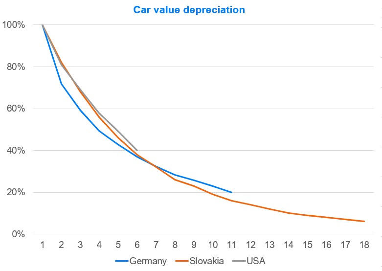 As I mentioned in the beginning, the decline in car prices is very steep at the beginning. In particular, the first three years are crucial. During this time, the value of the car will drop by nearly a half.