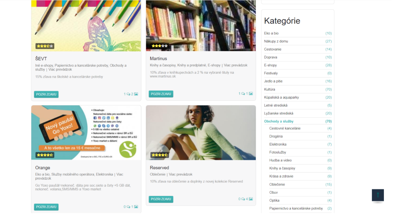 Popis: Zľavy ponúkané na študentský preukaz ISIC