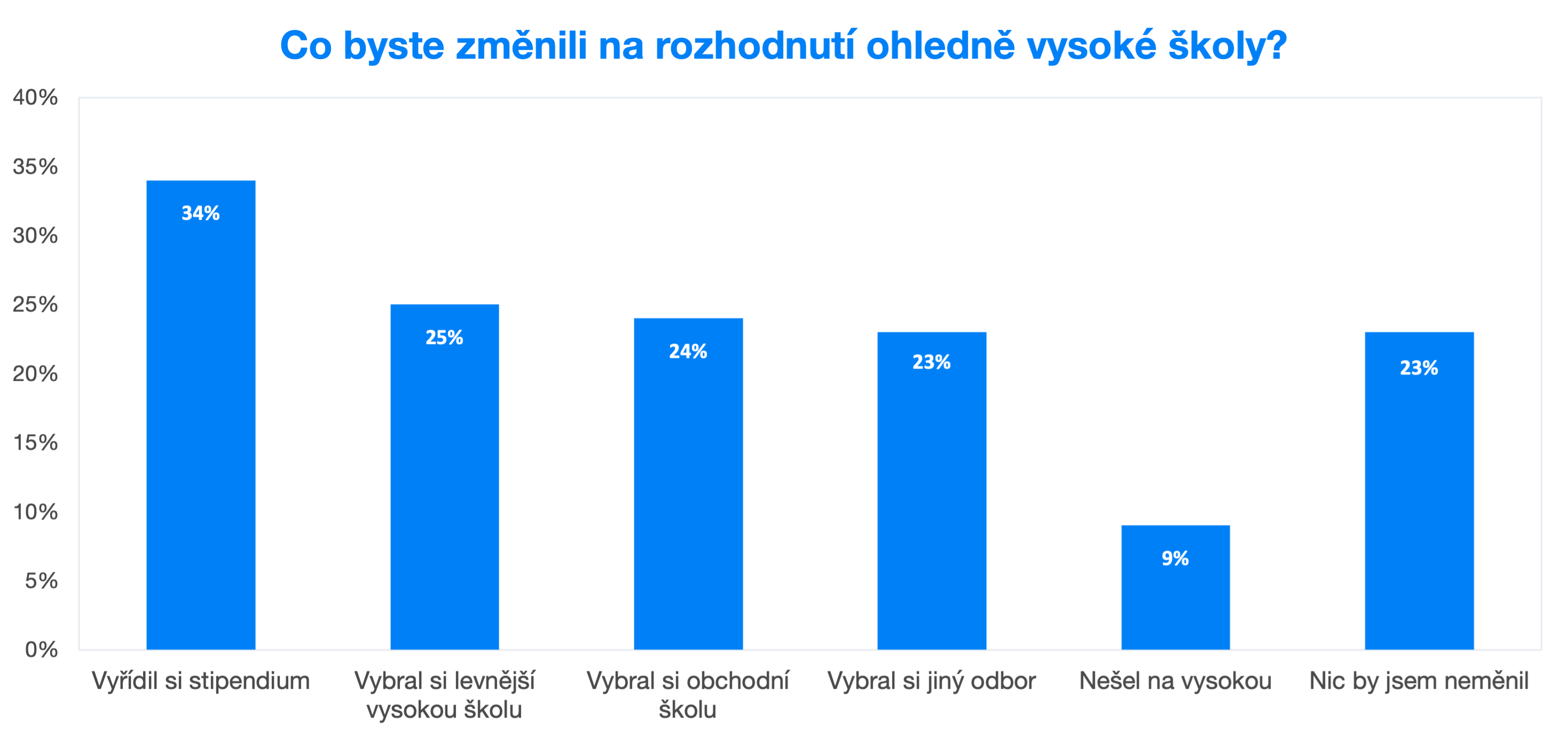 Na grafu výše můžete vidět, co by zpětně změnili ti, které dluh nadměrně zatížil. Netřeba ale panikařit, školní a studentské půjčky v Evropě takovou krizi zdaleka nevytvářejí.