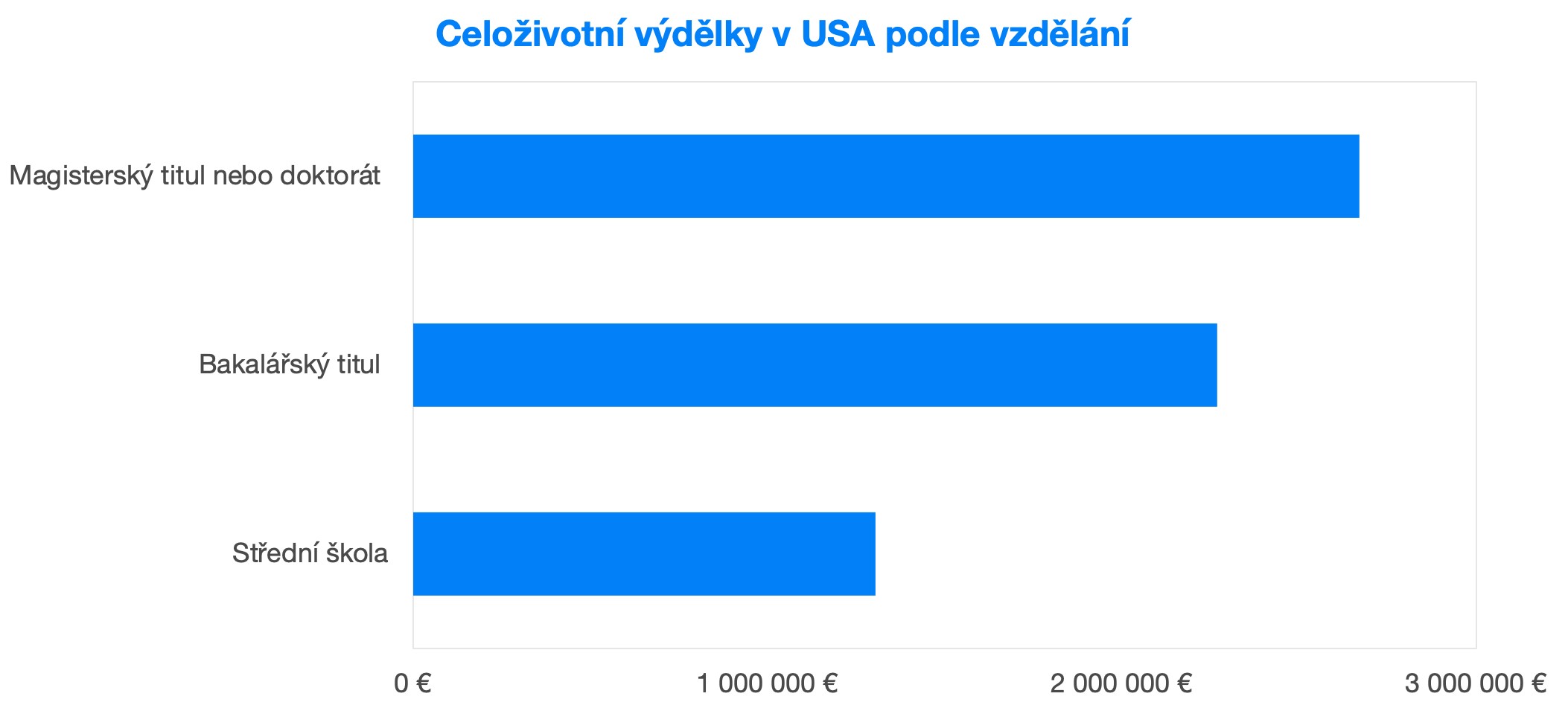 Hned na začátek je třeba podotknout, že ve většině případů jde o výhodnou investici. Ve Spojených státech vydělají absolventi univerzit za celý život průměrně o milion dolarů více než jejich vrstevníci se střední školou. Přestože na obětované příležitosti pracovat a nákladech na školu samotnou ztratí pár stovek tisíc, stále se to značně vyplatí.