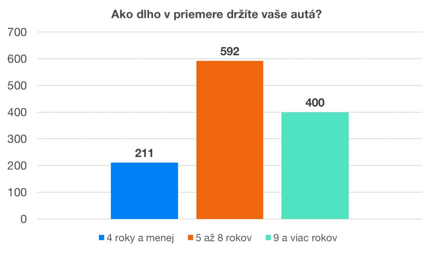 Z odpovedí podľa krajín je tiež vidieť zásadnejší rozdiel, ktorý je však spôsobený hlavne tým, že poľskí respondenti kupovali viac ojazdených áut a držia ich teda kratšie.