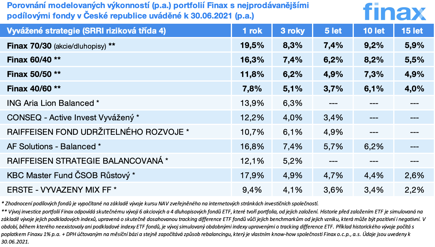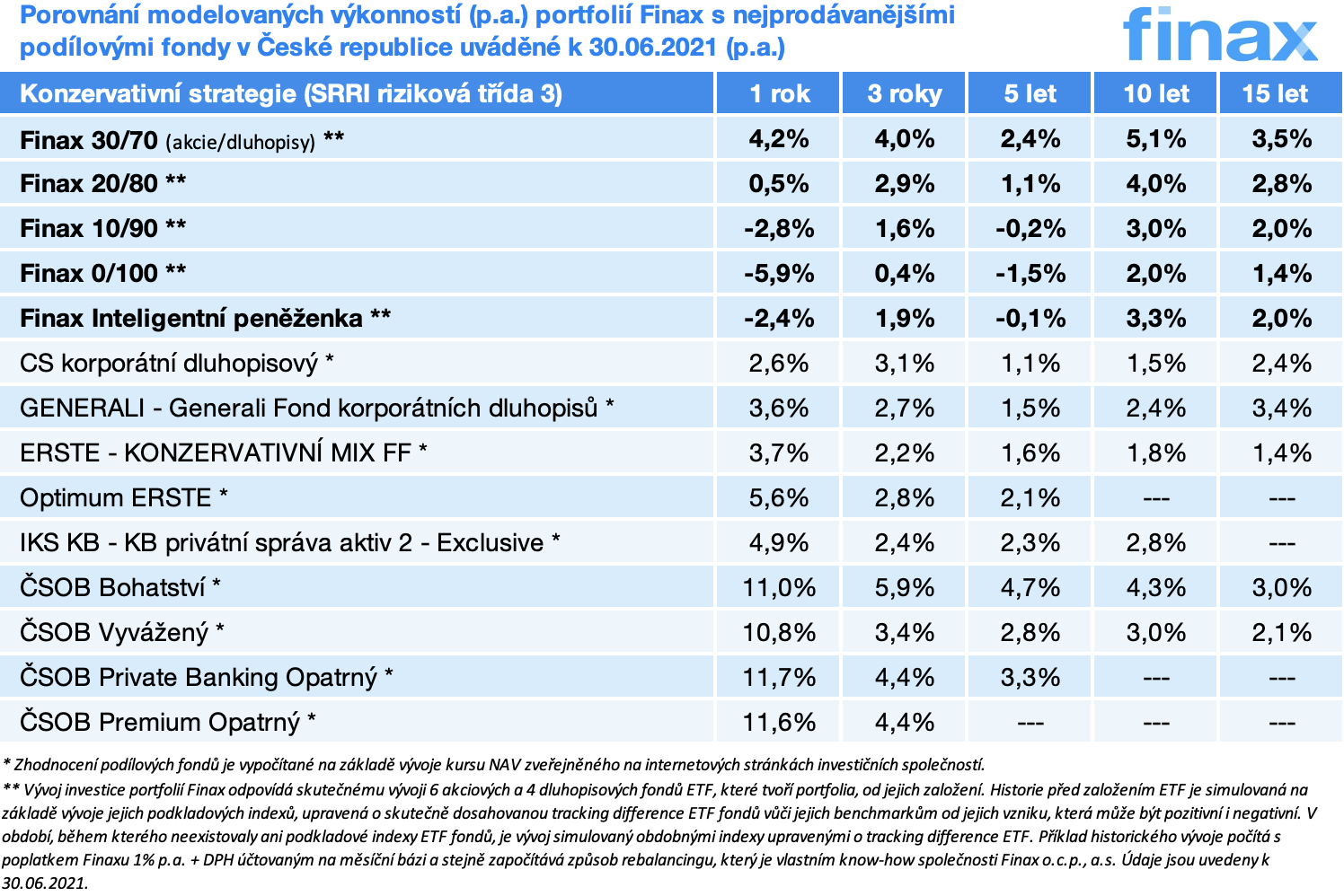 Konzervativnější podílové fondy proto zůstávají nejkonkurenčnější vůči obdobným portfoliím Finaxu.