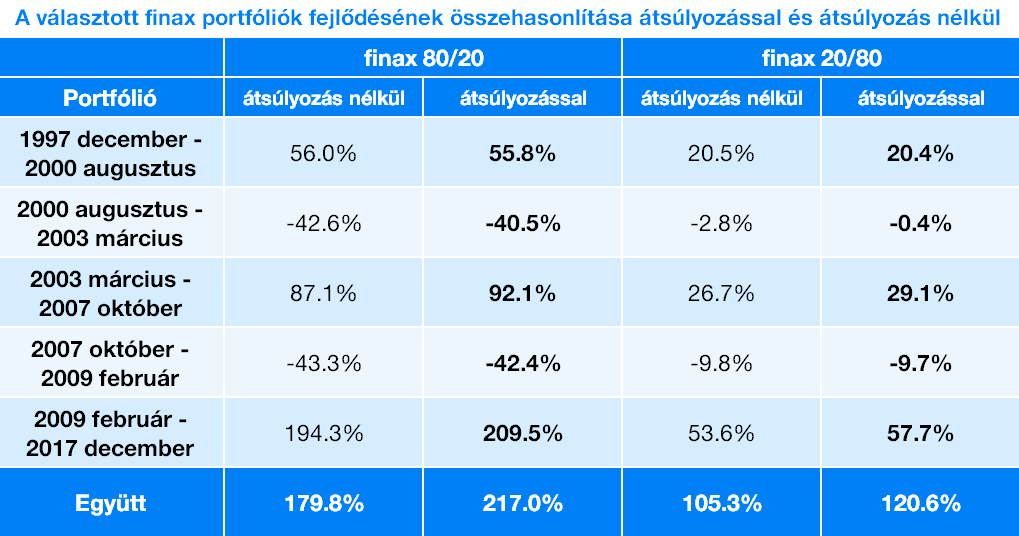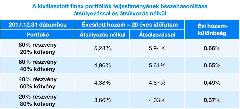 - Az átsúlyozás szolidan növeli a befektetés hozamát.