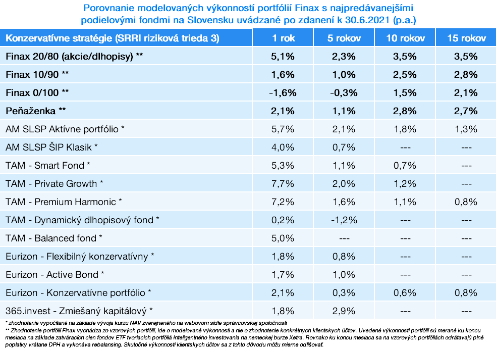 Konzervatívnejšie podielové fondy preto zostávajú najkonkurenčnejšie voči obdobným portfóliám Finaxu. To niektoré z nich potvrdili v uplynulom roku, kedy sa v rizikovej skupine 3 našli podielové fondy, ktoré výkonnosťou prekonali portfóliá Finaxu