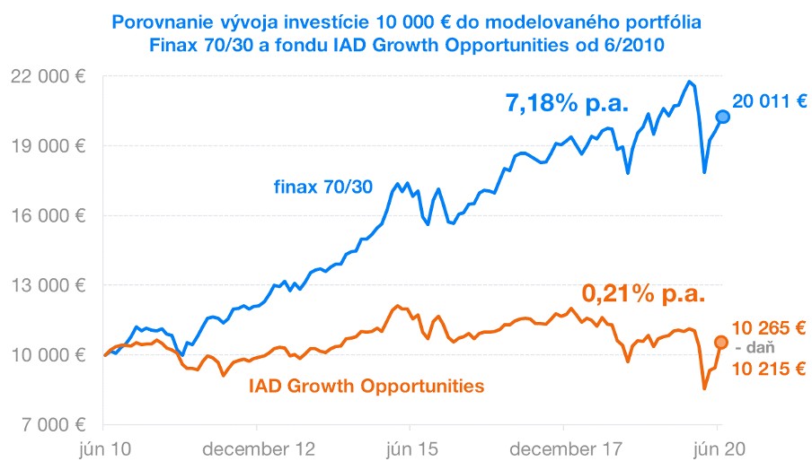 Dalo by sa povedať, že vo fonde IAD Global Index dostávate to isté ako vo Finaxe, len za to platíte trikrát viac a z výnosu ešte zaplatíte aj daň. Strácate tak významný benefit fondov ETF. Vlastne investujete do dobrých nástrojov okľukou, ktorá vám vezme všetky ich výhody.