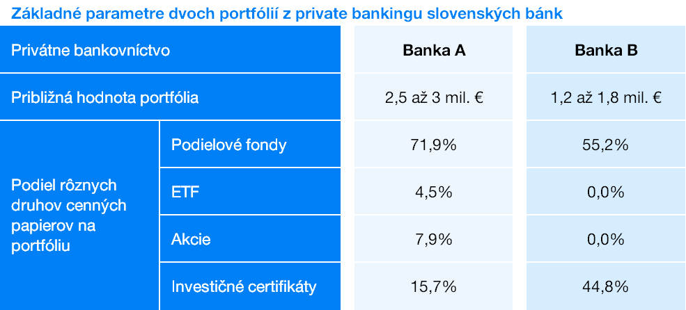 V uplynulých týždňoch sme mali možnosť nahliadnuť do dvoch portfólií privátnych klientov slovenských bánk. Hodnota oboch sa pohybuje v sedemciferných sumách, čím predstavujú atraktívnych klientov pre každú inštitúciu venujúcu sa správe majetku.
