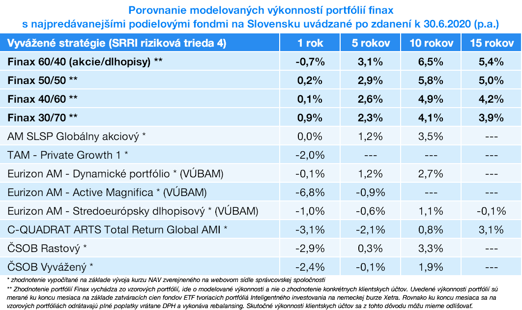 K 30.6.2020 sme aktualizovali všetky obľúbené porovnania populárnych investičných riešení s Finaxom: