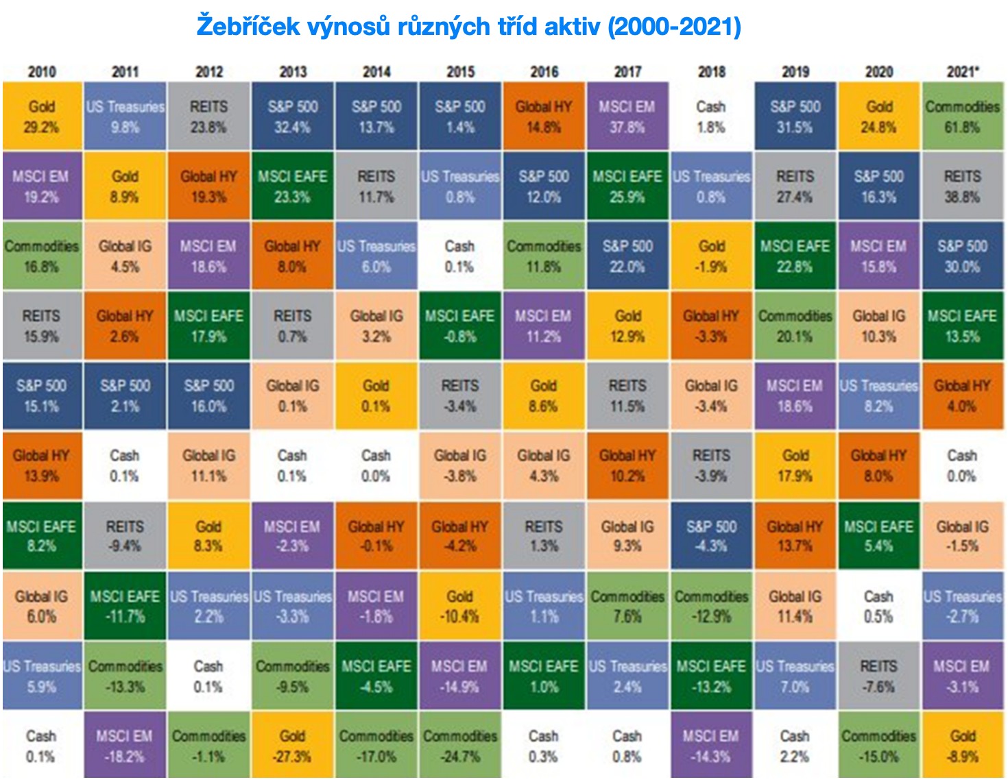 Sami se můžete přesvědčit, že žebříček nejlepších tržních segmentů se každým rokem skládá do stále složitější skládačky. A právě zde přicházejí na pomoc společnosti, které nabízejí diverzifikované globální portfolio akcií a dluhopisů, např. společnost Finax. Co máme ve svých portfoliích?